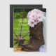 Anuncie sua fazenda rural ou casamento com o encantador tema Rustic Pink Daisies e Cowboy Boots Country Casamento Salve os Anunciantes de Data. Este casamento ocidental informal, mas elegante, mantém o ímã de data com uma fotografia floral tênue de botas de cowboys de couro castanho cheias de um buquê de flores margaridas cor-de-rosa e de um véu branco, com uma velha roda de vagão e um fundo natural verde desfocado.