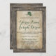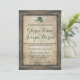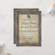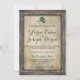 Este convite de casamento rústico apresenta uma estrutura de madeira marrom em volta do fundo do papel pergaminho. Uma isca de pesca verde pode ser encontrada no topo deste convite e fontes em preto e verde em fontes divertidas e estiling durante todo o convite. Este é um desportista excelente ou um convite para o casamento de entusiastas da pesca.