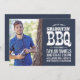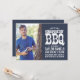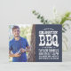 convite de festas legal de churrasco de graduação rústica com tipografia vintage angustiada. Use as ferramentas de design para escolher qualquer cor de fundo para coordenar com as cores da escola ou o tema da festa. Adicione a sua foto de mais velho e detalhes de festa de formatura com espaço no vazio para ver fotos e texto adicionais no verso. Clique em Personalizar para adicionar mais fotos e texto, editar fontes e cores para criar um anúncio e convite de festas de graduação exclusivos.