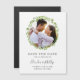 Imã salve a data rustica com a sua dentro de uma coroa verde de folha de azeitona. Abaixo estão seus nomes em uma fonte de script manuscrita e seus detalhes em uma fonte de cinza média. Esta design é excelente para um casamento de verão.