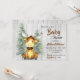 Muito fofo Chá de Bebê Moose O convite apresenta um alce fofo, sentado numa floresta de pinheiros. Um fundo de madeira leve coloca o olhar rústico para este chá divertido. Excelente para um menino ou menina!