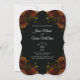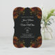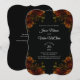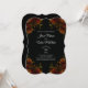 O legante torrado cor de laranja rústico e escuro no convite de casamento preto é adorável com rosas cor de laranja e verde num fundo negro escuro para um visual de casamento gótico. As flores adornam os cantos de um olhar elegante, moderno e sofisticado. Perfeito para um casamento de outono, Halloween ou estilo gótico.
