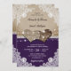 Esses convites românticos para casamento, inspirados em corações de burlap em uma toca e fundo de renda são perfeitos para convidar seus convidados para sua festa de casamento roxa de campo/quintal/celeiro.