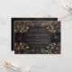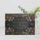 Rosa convite rústico, um motivo impressionante e detalhado de rosas vintage, em um fundo rústico. Bonitos tons naturais ou fundo escuro de quadro negro e pequenos detalhes de rosa, neste design único que adiciona um elemento de teatro ao convite de casamento. O guião clássico claro tem uma sensação maravilhosamente formal, sem ser abafado, e tudo isso é muito divertido. Então, se você planeja uma bola masca, ou um casamento elegante de verão, então este é o convite para você.