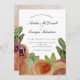 Rosas rústicos pintados de forma elegante com uma letra semissformal. O modelo é fácil de editar e adicionar os nomes de casamento e detalhes desejados. Um belo convite de casamento para outono ou outono. Com cores boêmicas de laranja queimada, terracota, marrom, bege e e verde, esse convite é um prazer. O trabalho de arte floral original foi feito com tinta alcoólica. Convite para casamento de Rosa russo.