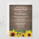 Convite para Casamento Floral Russo de Girassol. Flores Florais e Fundo de Madeira Rústica. Retro de Vintagem do País. Digital Imprimível. Para mais personalização, clique no botão "Personalizar" e use nossa ferramenta de design para modificar este modelo.