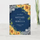 Convite Rustic Sunflowers Navy Blue Wood QR Code Wedding