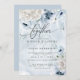 Convite De Casamento | Convidações de Casamento Rustic Elegant Watercolor com Poppies Azuis - tons de azul empoeirado com branco de marfim - uma coleção de papoilas e flores da dália acentuadas com verde-claro eucalipto verde verde verde-verde-verde-verde-verde-verde-tudo sobre fundo azul-aquarela-esmalte - caligrafia manuscrita - fácil de personalizar modelo - design original por ©WhimsicalArtwork™ BarefootBride ™. Isto é parte de uma suite de artigos de papelaria de casamento, assim como Chás de fraldas, Aniversário e Convites de Natal. Para perguntas ou assistência, entre em contato com o designer indy.designer@yahoo.com.
