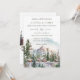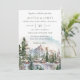 Rustic Winter Lodge in the Mountain Wedding Invitation é uma bela cena de inverno com aquarela acolchoada e cabanas, montanhas de esqui com elevadores de esqui, lago de montanha congelado com skatistas, alce, raposa e coruja. Convite perfeito para o seu casamento nas montanhas, cartão de Natal, feriado familiar nas montanhas. Altere o texto para corresponder ao seu evento.