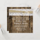 Convite de casamento rápido, com gráficos de um fundo de madeira curtida rústica. Gráficos de uma elegante renda branca, no topo, tem uma fita de fio dupla colorido, empinada em um nó. Personalize o texto branco para seu dia especial. Produtos correspondentes disponíveis.