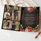 Convite Rustic Wood Red Roses Floral Frame QR Code Wedding