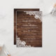 Convites de casamento elegantes, com um bonito e delicado design de renda de vintage em madeira rústica. O texto do estilo clássico em branco pode ser totalmente personalizado. Coleção de Casamentos na Loja Little Bayleigh!