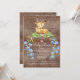 Chá de fraldas de madeira de cor aquosa, com um adorável veado-mãe, com o bebê com folhas e flores azuis sobre um fundo de madeira marrom rústica. Perfeito para um chá de fraldas de rapazes
