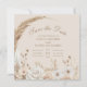 Este convite de save the date inspirado no estilo rústico apresenta rosas brancas combinadas com flores selvagens secas e suaves em um fundo bege quente. O arranjo floral orgânico e tons terrosos o tornam perfeito para casamentos ao ar livre, no campo e inspirados em boho.