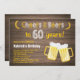 Convite rústico do aniversário dos elogios e das cervejas 60th. Aniversário adulto. Aniversário da cerveja para homens. Fundo de madeira rústico. Vintage do país retro. Para uma personalização mais adicional, clique por favor "personalizam-no" botão e usam-nos nossa ferramenta de design para alterar este modelo.