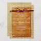 Este país que rústico o convite ocidental do casamento tem um fundo impresso de serapilheira com um papel de madeira da grão com os rolos elegantes perfurados nele imprimiu o design. Igualmente tem um arco da guita na parte superior. Este é um convite impresso plano; não é tecido real de serapilheira ou guita real. Este design impresso dá-lhe o olhar de um convite mergulhado projetado mão, mas com os preços com desconto de um convite impresso. A parte traseira do convite tem o mesmo design rústico do estilo country com a palavra "amor" no roteiro. Você poderia mudar este fraseio para personalizá-lo com os nomes dos noivos se você quis a. Estes convites do casamento do tema do país são perfeitos para casamentos do vaqueiro.