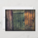 Convites rústicos do casamento do país das portas de madeira velhas. Estes convites de casamento originais têm três portas de madeira empilhadas e que inclinam-se em uma outra com hardware do punho do metal em três máscaras da madeira afligida do celeiro. Têm uma disposição da pia batismal do estilo da tipografia do divertimento. Estes anúncios originais do casamento vintage são perfeitos para um casamento rústico do celeiro do país.