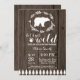 Convite rústico do chá de fraldas do urso polar. Convite do chá de fraldas do inverno. Convite do chá de fraldas do menino ou da menina. Deixe-nos obter selvagens. O chá de fraldas do feriado de inverno convida. Fundo de madeira rústico. Celeiro retro do vintage do país. Para uma personalização mais adicional, clique por favor "personalizam-no" botão e usam-nos nossa ferramenta de design para alterar este modelo.