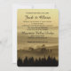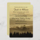 Este convite caracteriza uma opinião superior da montanha de um vale com a silhueta dos pinheiros da floresta que alinham a parte inferior. Trações nevoentas da névoa através do vale. O esquema de cores é ouro amarelo e preto. Personalize este convite para seu casamento da montanha. A parte traseira tem o espaço para mais informação se você precisa de fornecer mais detalhes. Aperfeiçoe para amantes de natureza, estes convites trabalham bem para um casamento exterior, da natureza, o rústico, ou da montanha.