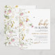 Este convite de bebê em flor tendência apresenta aquarela de flores silvestres rosa e amarelo, camomila rústica, folhas verdes e galhos. Aproveite!