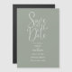 Este casamento de guião verde elegante salva a data em que o convite magnético pode ser personalizado com as suas informações especiais do dia do casamento. Projetado por Thisnotme©