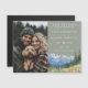 Este cartão magnético elegante com pintura aquarela de montanhas e flores silvestres para salvar a data do casamento pode ser personalizado com sua foto e informações em tipografia moderna sobre um fundo verde salvia. Concebido por Thisisnotme©