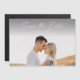 Cartão de salvar data de casamento com foto e roteiro moderno. O verso é um ímã. Clique no botão de editar para personalizar este design com suas fotos e detalhes do casamento.