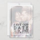 Anuncie seu noivado de casamento à sua família e amigos em estilo com esta foto personalizada moderna, salve a data do cartão magnético. Este modelo de design chic apresenta sua foto desbotada na frente com uma camada opaca. As palavras "Salve nossa Data" com data de casamento e seus nomes para personalizar. A parte de trás do cartão tem mais detalhes do seu casamento para personalizar em uma cinza de pomba. Parabéns pelo seu noivado e melhores votos para o seu casamento! Desenhado pela artista ©Susan Coffey.