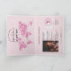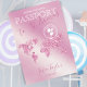 Convite Moderno e Elegante de Destino de Aniversário com Mapa Mundial para São Thomas, como passaporte. Detalhes de brilho rosa