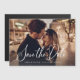 Esse casamento elegante salva a data dos cartões magnéticos que apresentam a tipografia clássica do guião branco moderno como uma sobreposição na sua foto.