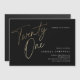 O moderno convite de festas minimalista apresenta o na moda faux gold foil number guião manuscrito Twentone e os detalhes do seu partido em serif clássico sobre cor preta de fundo, simples e elegante, convite para o aniversário de um excelente surpresa para homens e mulheres. A cor preta de fundo pode ser alterada para qualquer cor de sua escolha.