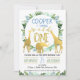 Procurando um um convite selvagem do aniversário dos animais da selva do ouro do falso primeiro? Características deste design bonitos dois girafas e um elefante em um fundo branco. Eu igualmente incluí algum texto do ouro do falso para o título que não pode ser alterado. O design consiste em uma grinalda da folha da selva na parte superior do design e de uma beira da folha na metade inferior do design. Convite selvagem do aniversário dos animais do safari do ouro do falso deste menino o um primeiro está pronto para ser personalizado. Para mais design neste tema visite por favor a loja.