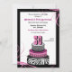 Convite animal do ultra à moda e divertimento do impressão de aniversário do bolo para o quadril e a menina do chique! Os rosa pretos e quentes combinados com os swashes do divertimento e os padrões legal fazem a isto um convite por uma noite recordar! Personalizamento da ajuda da necessidade? Contacte-me em info@missNnick.com