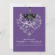 Este convite elegante lindo do casamento caracteriza uma forma do coração enchida com as flores brancas delicadas e uma fita gráfica e um arco do cetim preto. Moderno & romântico isto ajustará certamente o palco para seu dia especial. Personalizado facilmente. Lotes das cores a escolher de. (ameixa)