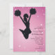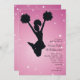 Um convite perfeito para uma festa de aniversário de adolescente ou qualquer hora. O convite de gradiente cor-de-rosa tem abstrato círculo e estreladas de estrelas com uma silhueta de ébano de um cheerleader saltante.O cartão é fácil de personalizar com seu texto, fonte, cor da fonte e escolha de seis tipos de papel.