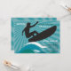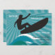 Um convite de festas de praia para o entusiasta do surfe que está celebrando um aniversário. Este convite quadrado moderno apresenta uma silhueta de surfista numa prancha de surfe a montar ondas de pele branca. O plano de fundo é um padrão de listras azuis e lacrimogêneas. Um convite de excelente adolescente.O cartão é fácil de personalizar com seu texto, fonte, cor da fonte e escolha de seis tipos de papel.