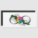 símbolo infinito com rosa arco-íris sobre fundo branco.
