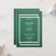 Este convite para o casamento é muito simples. Com esmeraldas escuras/fundo branco e elementos lineares brancos, o modelo é fácil de personalizar com seus detalhes de casamento para um convite maravilhoso que é elegante e eterno.