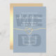 Simples, elegante, mínimo convite para casamento azul empoeirado com o guião moderno e o coração de corda de ouro falso.