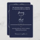 Na moda e o cartão de convite de casamento azul e marinho elegante. Personalize este modelo ou adicione seu próprio design.