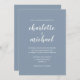 Um convite de casamento elegante, simples e moderno, feito em azul empoeirado.