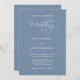Convocação para Casamento Formal e Elegante do Manuscrito Periwinkle Dusty Blue e Branco da Caligrafia Moderna Minimalista. Todos os elementos, incluindo textos e imagens, fundo e cores, são personalizáveis. Se quiser mudar o design para outro produto ou tamanho, faça os ajustes necessários para ajustado dos novos itens.