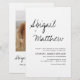 Orçamento Personalize este convite para Na moda preto e branco simples e elegante do Boho Moderno com sua mensagem, foto elegante e detalhes. Este convite minimalista inclui a tipografia da escrita à mão na moda para a celebração especial do Casamento a Ser.