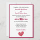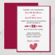 Um convite de casamento com um coração vermelho esboçado.