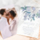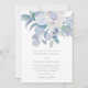 Bonita muda em pó azul delicado convite para o casamento floral apresenta bonito flores azuis de cor aquática, estilo vintage, e um simples design clássico com tipografia elegante de escrita caligráfica. A parte de trás é foto de cheio.