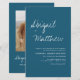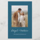 Orçamento Personalize este Simples Teal Escuro Elegante e Na moda Branco com sua mensagem e detalhes com uma foto elegante no verso. Este convite minimalista inclui a tipografia da escrita à mão na moda com uma cor moderna para a celebração especial do dia do casamento.