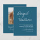 Orçamento Personalize este Simples Teal Escuro Elegante e Na moda Branco com sua mensagem e detalhes com uma foto elegante no verso. Este convite minimalista inclui a tipografia da escrita à mão na moda com uma cor moderna para a celebração especial do dia do casamento.