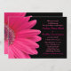 Simples convite de casamento de gerbera daisy cor-de-rosa com fundo negro ousado. As cores deste convite de casamento rosa-forte são rosa-quente e preto. Seria excelente para um casamento com um tema de margarida floral rosa. As margaridas cor-de-rosa da Fuchsia são uma flor vibrante e bonito e fazem flores maravilhosas para o seu casamento. Junto com preto, você pode usá-los para um casamento no verão ou no inverno.