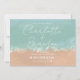 Simples convite para o casamento na praia de verão. Espadilha moderna e areia com uma dica de desenho de arte azul
