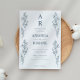 Convide seus convidados com elegância de eterno usando este simples convite de casamento floral azul. Com arte vertical em linha botânica em ambos os lados e tipografia serif minimalista, este modelo equilibra o refinamento moderno com a beleza clássica. Perfeito para casamentos de qualquer época